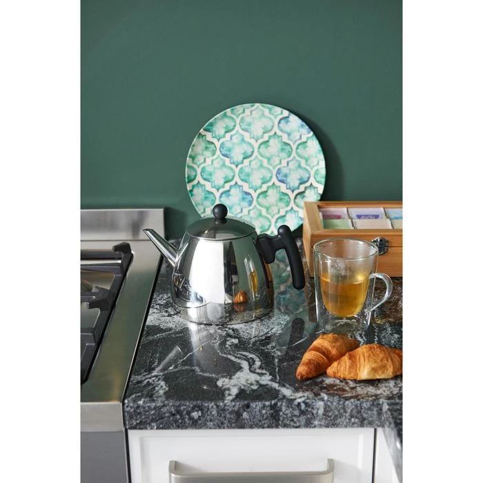 • Hochglanzpolierte Oberfläche mit schwarzen Beschlägen