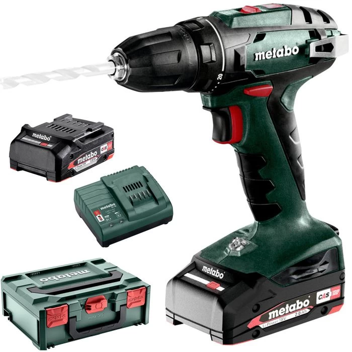 Lieferung: inkl. 2 Li-Ion Akkus, Ladegerät SC 30, Schnellspannbohrfutter, Gürtelhaken, Transportkoffer metaBOX 145 BS 18