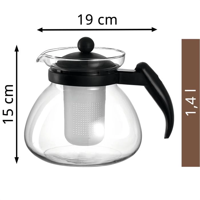 • Kanne mit praktischem Griff und Deckel aus schwarzem Kunststoff